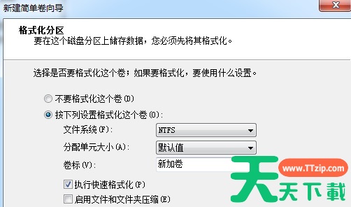 6、设置新加卷格式。