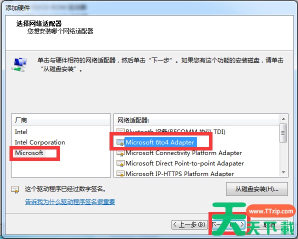 5、在新的窗口中厂商选择microsoft,在网络适配器中选择microsoft loopback adapter点击下一步。