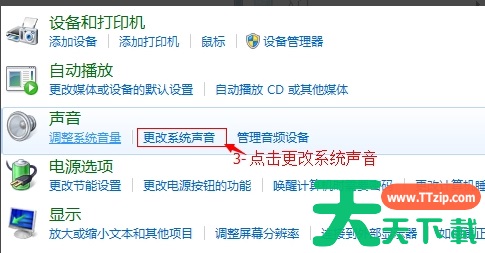3、选择更改系统声音。