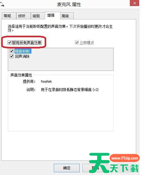 8、在“增强”中,选择“禁用所有声音效果”。