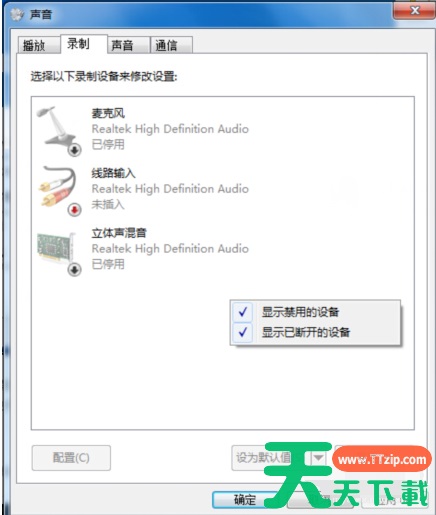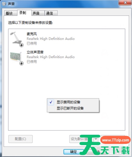 1、Win7系统下,如何开启禁用的麦克风:
