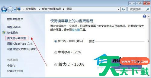 11、显示对话框中在左侧找到更改显示器设置,然后点击更改显示器设置!
