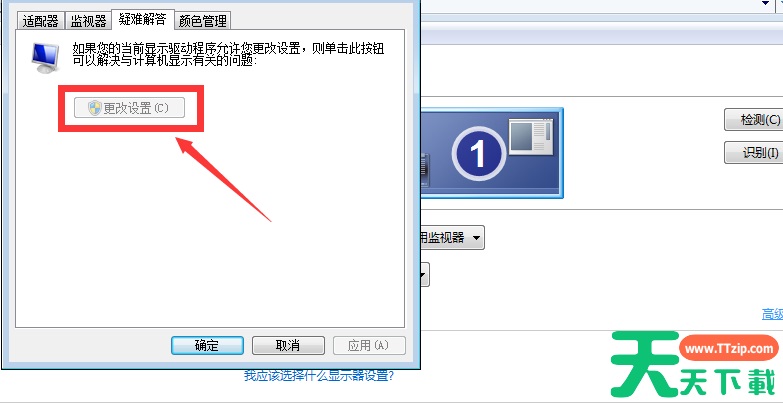 2、进入面板以后,点击菜单栏中的“疑难解答”选项,点击界面上的“更改设置”选项。