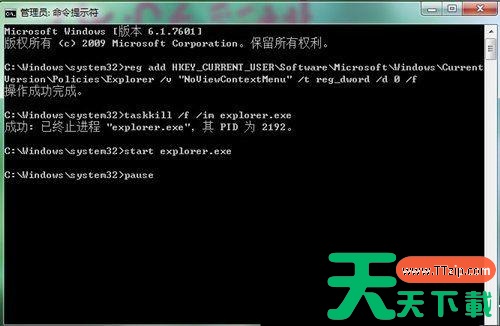 reg add HKEY_CURRENT_USERSoftwareMicrosoftWindowsCurrentVersionPoliciesExplorer /v “NoViewContextMenu” /t reg_dword /d 0 /f