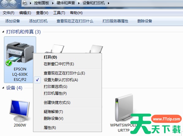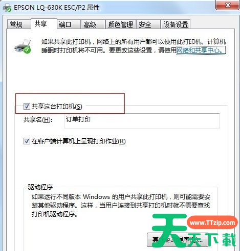 5、在当前所连接的打印机图标上右键打印机属性-共享;