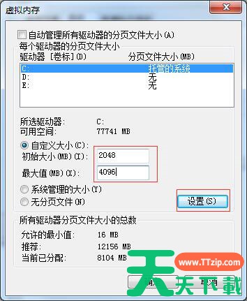 7、设置完成以后,就可以看到在C 盘的虚拟内存大小已经更改为我们设置的大小了,然后点击下方的“确定”按钮;