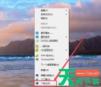 1、我们在桌面上空白的地方,单击鼠标右键,在出现的菜单中点击个性化选项。