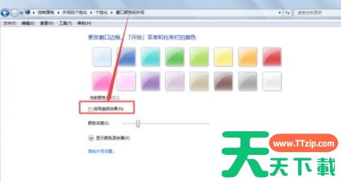 5、然后我们将“启用透明效果”选项前面框中的勾勾上,根据需要设置一下颜色的浓度,设置好之后,点击保存修改即可。