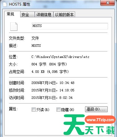3、右键单击hosts文件,然后选择Properties:如图所示: