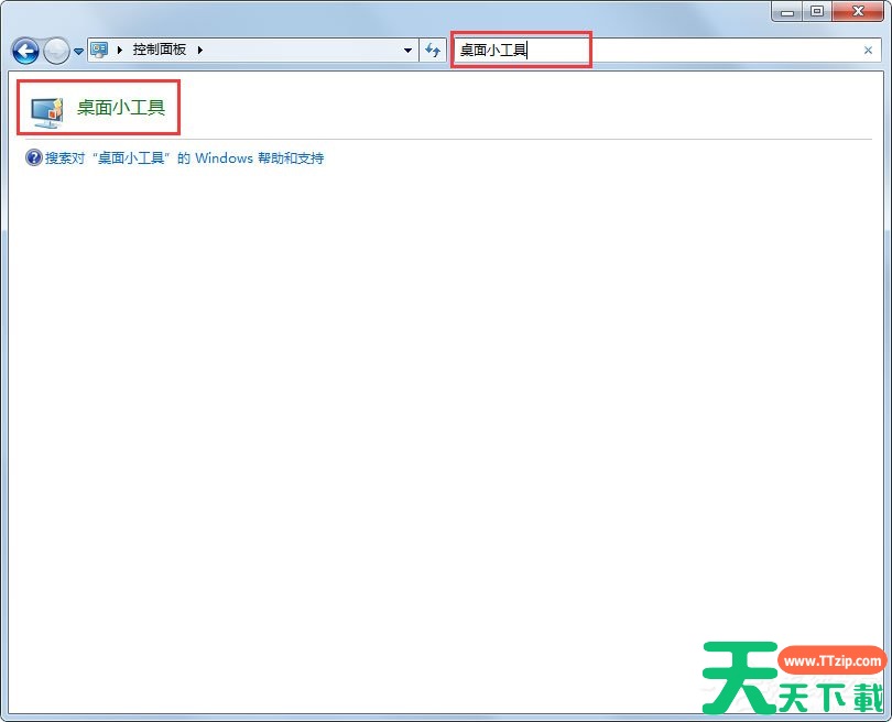 2、在控制面板,搜索桌面小工具,可以搜出桌面小工具的按钮;