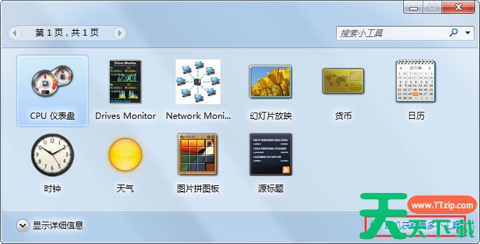 3、点开桌面小工具后我们可以看到现有的一些小工具;