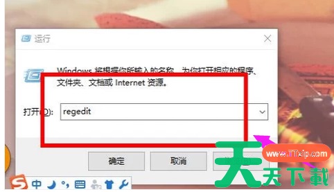 键入“win+r”组合键,打开运行框,输入regedit后选择“确定”。