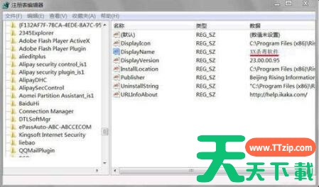 4、通过搜索,就会找到该软件的残留信息,右键删除就可以了。如图所示: