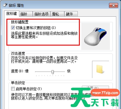 5、鼠标主键切换,如果您没设置过也被修改了,估计是有恶作剧软件病毒篡改。按照天天下载Ttzip上述方法还原即可。