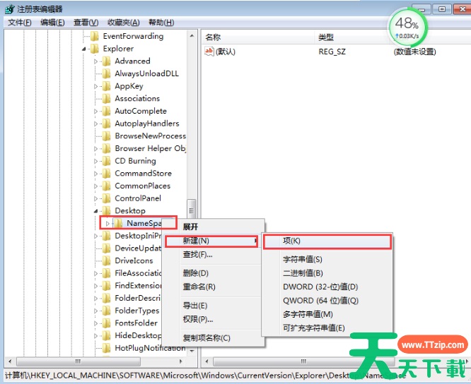 2、依次打开注册表路径 HKEY_LOCAL_MACHINESOFTWAREMicrosoftWindowsCurrentVersionExploreDesktopNamespace