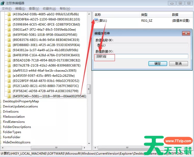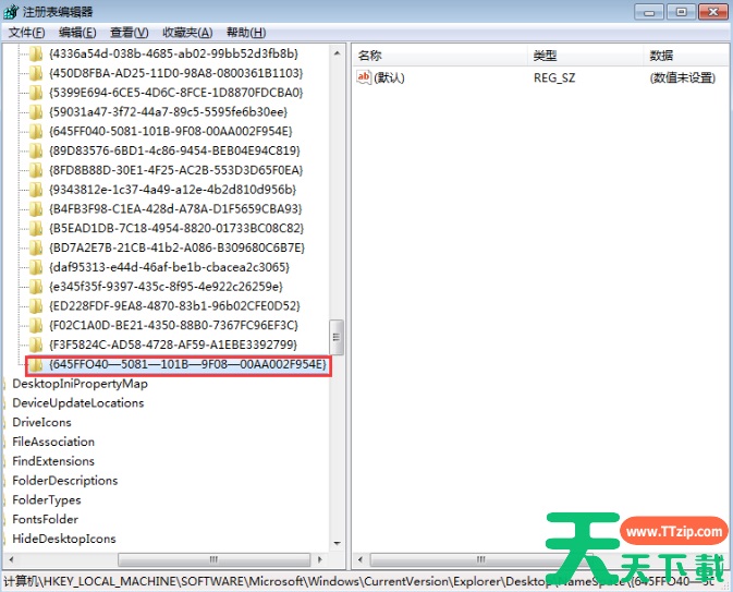 4、重命名该文件夹,名称为“{645FFO40—5081—101B—9F08—00AA002F954E}”。
