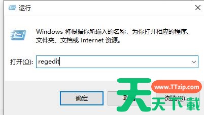 2、在运行的打开中输入“regedit”,再点击下方“确定”