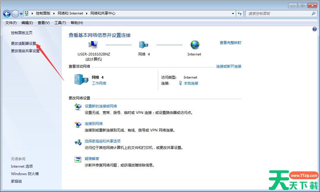 依次点击“网络和Internet”、“网络和共享中心”、“更改适配器设置”;