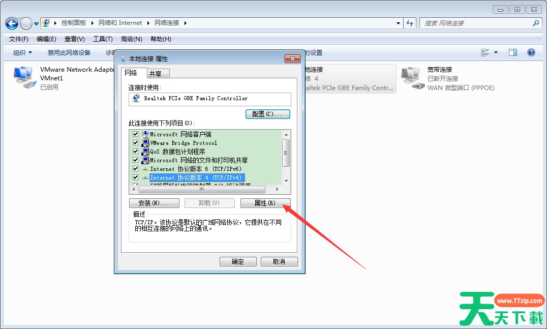 在“网络”选项卡中找到“TCP/IPv4”选项,再按下“属性按钮”;