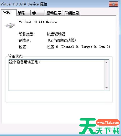 3、在属性窗口,左键点击:策略,再点击:启用磁盘上的写入缓存(W),去掉前面小方框内的勾。