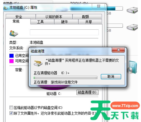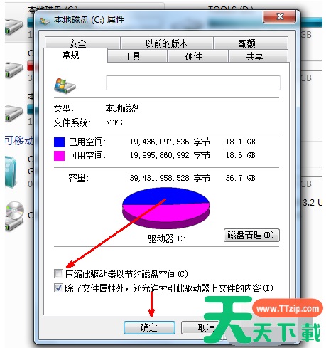 如果电脑的磁盘空间实在太小,可以在属性页中选中压缩驱动器来节约磁盘空间,通过这种途径可以一定程度上节约空间。