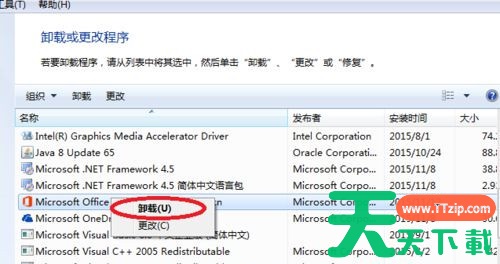 4、右键单击“Microsoft Office Professional Plus 2013”选项,单击卸载;