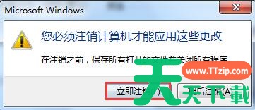 4、在弹出的确认窗口里,我们点击“立即注销”,当电脑注销重启好之后,软件就可以正常界面使用了。