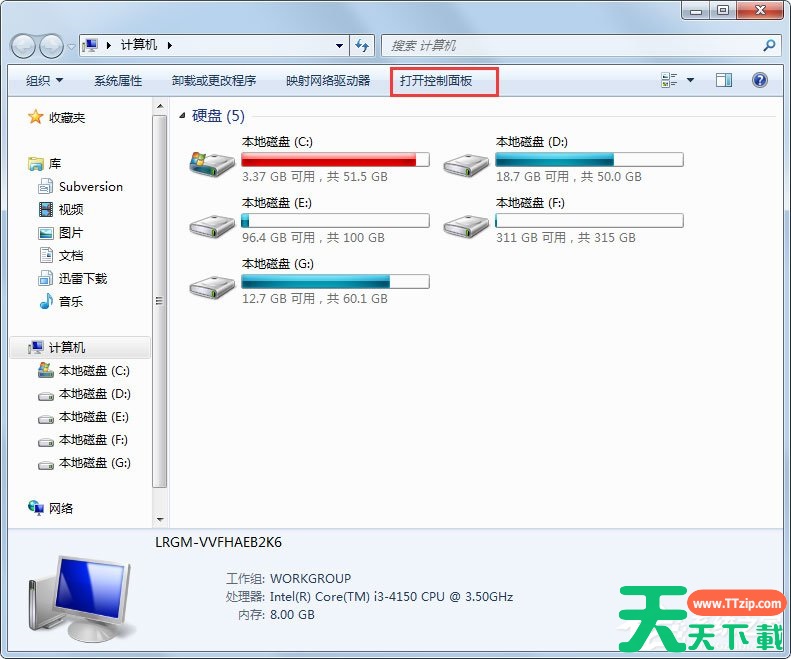 1、使用Win+E快捷键,调出资源管理器→打开控制面板;