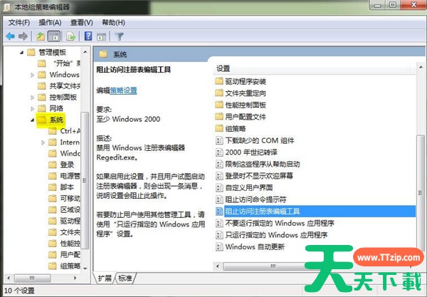 3、在”系统“中找到”阻止访问注册表编辑工具“,双击打开。
