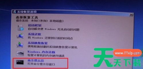 5、在系统恢复选项窗口中,点击打开命令提示符;