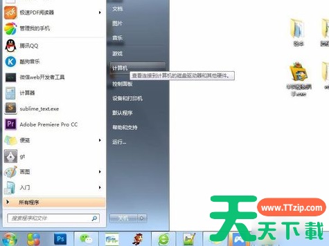 首先,点“开始”,然后找到“计算机”。