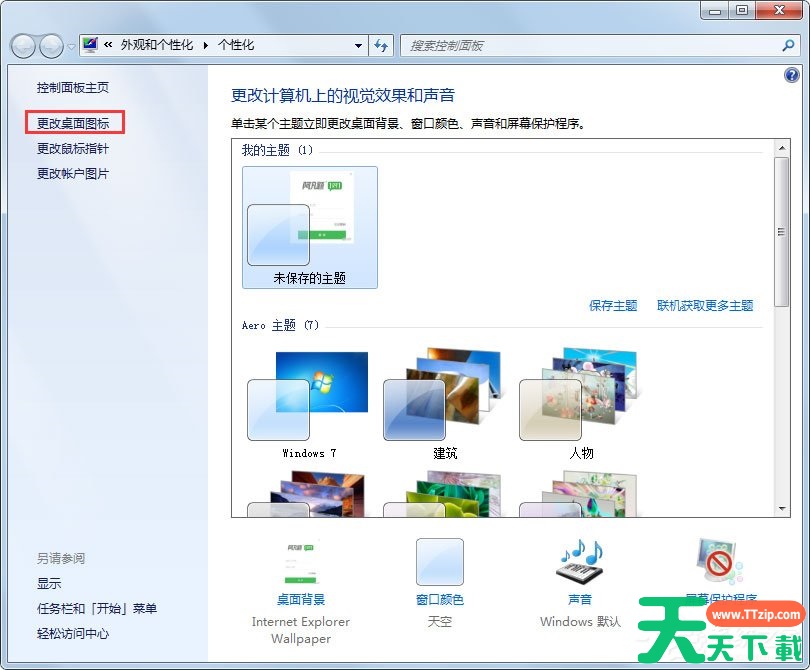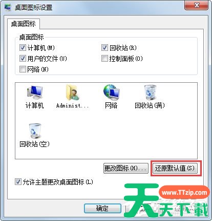 右键单击桌面空白处--个性化--单击左上方的“更改桌面图标”--再单击窗口的“还原默认值”即可。