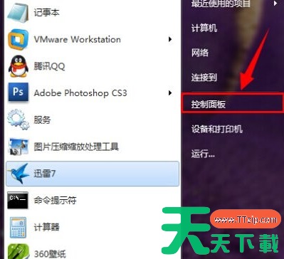 1、在桌面的左下角点击开始菜单,打开“控制面板”进入下一步操作。
