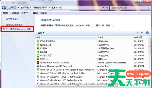 3、来到程序和功能界面,选择左上角的“打开或关闭Windows功能”点击打开。