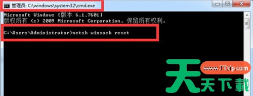 1、我们以管理员权限打开命令符,然后输入重置LSP命令netsh winsock reset ,一般出现这种情况多半是被加速器修改了某些参数所导致的无法打开steam进一步而造成的闪退现象,详情参考下图。