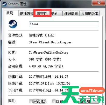 如果以上方法无效,我们找到steam图标然后右键属性,选择兼容性然后打√,以下选项即可解决问题。