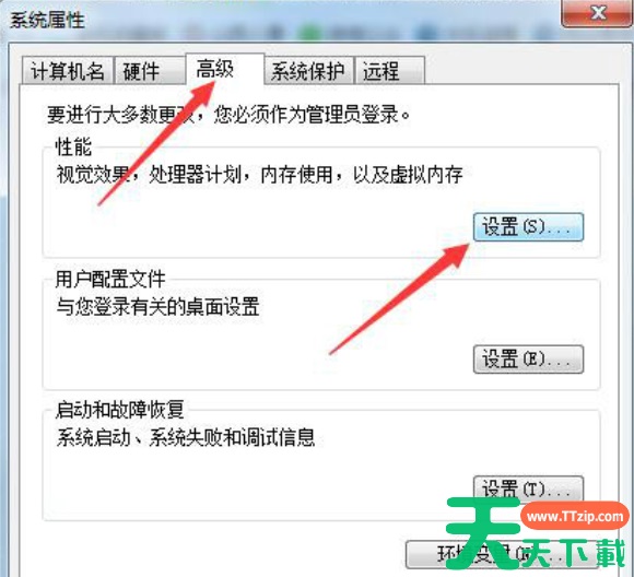 4、在打开的选项卡内选【高级】,点击【性能】下方的【设置】按钮。