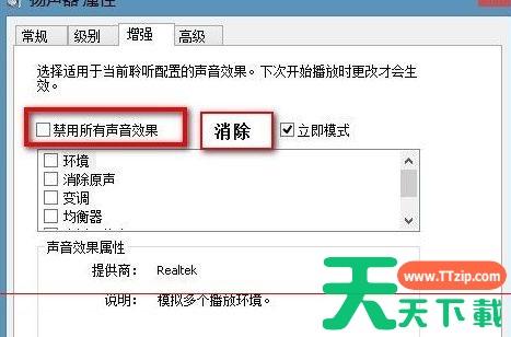3、再点击增强,把勾(√)去掉;