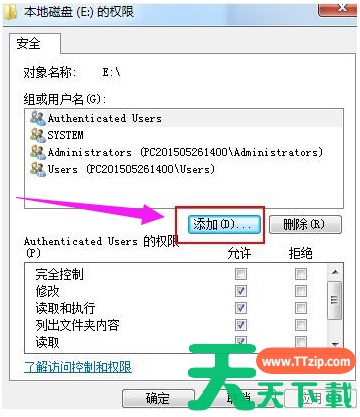 当看到“e盘权限”页面中的“组或用户中”新增了“everyone”这个用户,选择“everyone”并在“完全控制”前面打钩,设置完成后,按下“确定”即可。