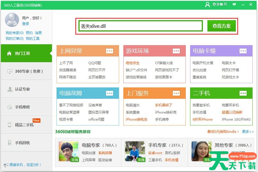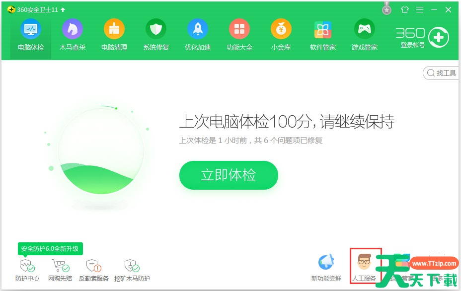 1、系统出现xlive.dll文件丢失的原因一般是中病毒或者误操作导致文件丢失的,打开安全卫士,点击人工服务;