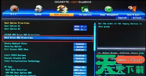3、选择“Hard Drive BBS Priorties”,回车进入。