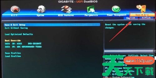 5、接着选择右上角“save & Exit”有些电脑是直接按“F10”。