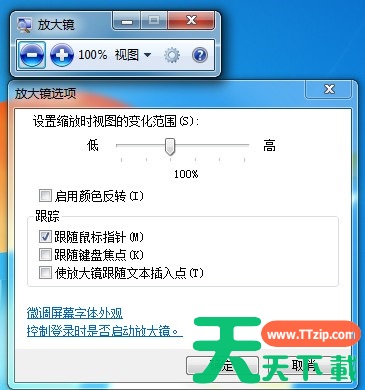2、Win键+符号键“+”:调用Windows7放大镜,并且放大局部内容;+符号键“-”:缩小局部内容。