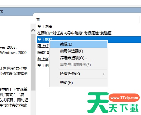 3、双击打开,看到禁止拖放选项,右击选择编辑。