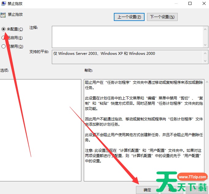 4、点击未配置,然后点击确定即可。