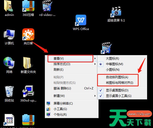 右击桌面空白处,选择“查看”,然后点击“自动排列图标”和“将图标与网络对齐”把前面的勾打上,然后你再把桌面图标随便摆放位置试试是不是可以自动对齐图标。