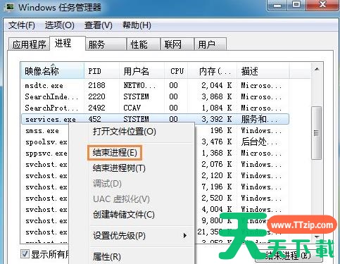 1、按下组合键Ctrl+Shift+ESC打开Windows任务管理器,接着找到services.exe进程,点击结束进程即可。