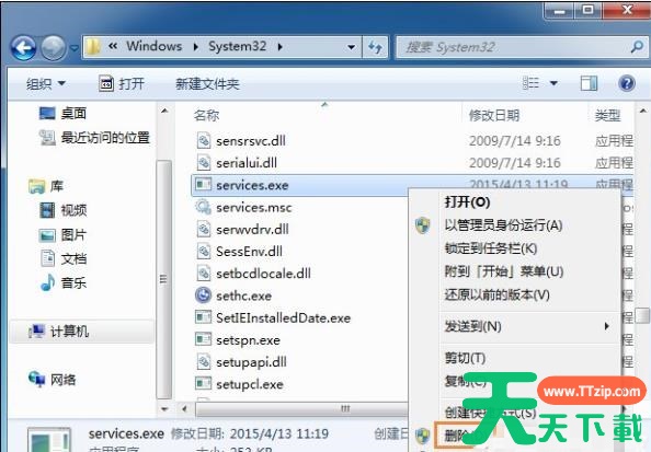 2、接着查找文件services.exe并将其删除,在C:\Windows\system32目录下找到该文件删除即可。