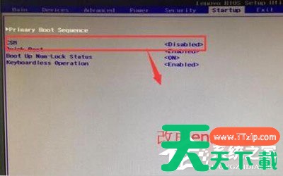 4、接着切换到startup选项,选择csm,回车改为enabled;