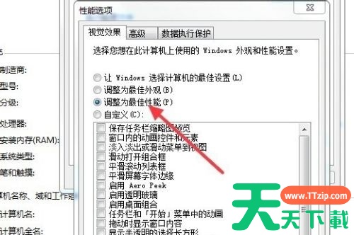 4、将视觉效果中的调整为最佳性能勾选,保存退出即可。